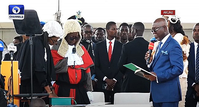 The ceremony took place on Monday at the Ondo State Sports Complex in Akure, the state capital, two months after he won the governorship election on the platform of the All Progressives Congress (APC).