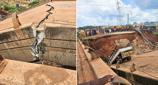 A bridge has collapsed in Enugu along the Enugu – Port Harcourt expressway between New Artsisan and Naira Triangle.