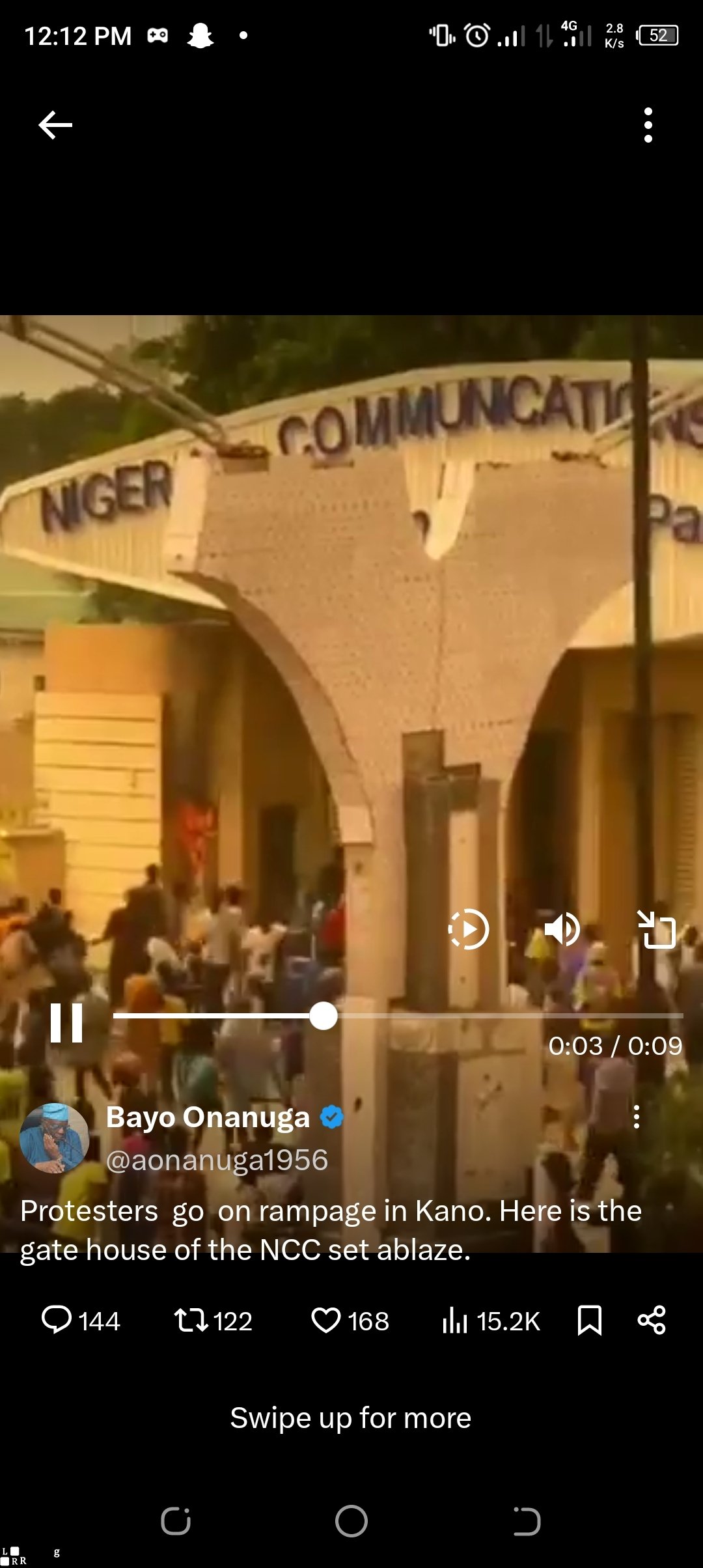 Protesters have set the gatehouse of the Nigerian Communications Commission (NCC) in Kano State ablaze.